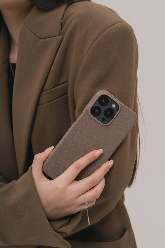Світло-коричневий шкіряний чохол для iPhone 16 Pro