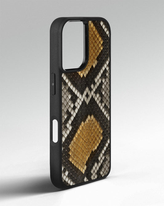 Чохол із сіро-жовтої шкіри пітона з дрібними лусочками для iPhone 16