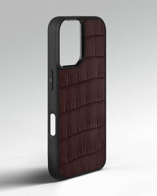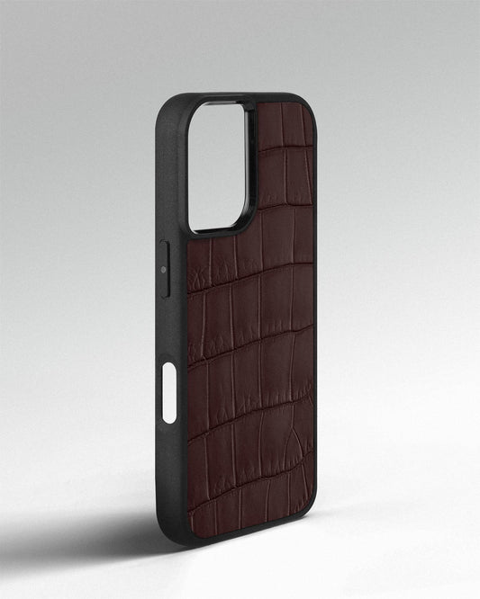 Чохол із темно-коричневої шкіри крокодила для iPhone 15