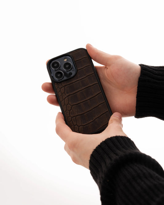 Чохол з темно-коричневої шкіри крокодила для iPhone