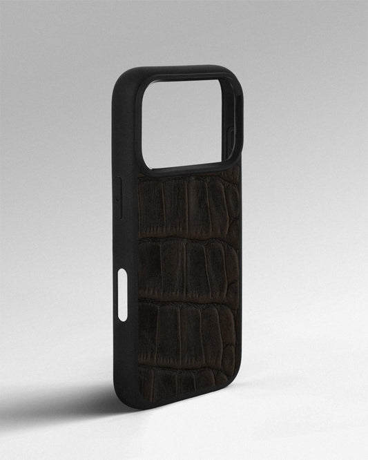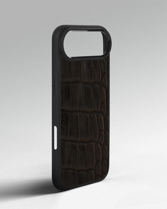 Чохол із темно-коричневого тиснення під крокодила на телячій шкірі для iPhone 16