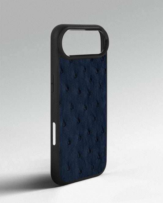 Чохол із темно-синьої шкіри страуса з фолікулами для iPhone 16