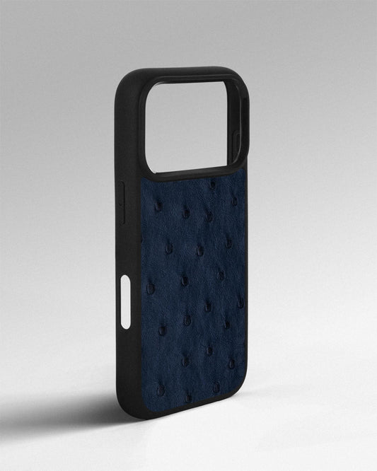 Чохол із темно-синьої шкіри страуса з фолікулами для iPhone 16 Pro
