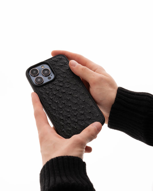Чохол із чорної шкіри страуса для iPhone 13 Pro
