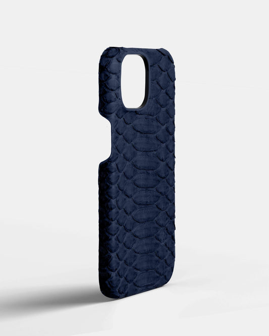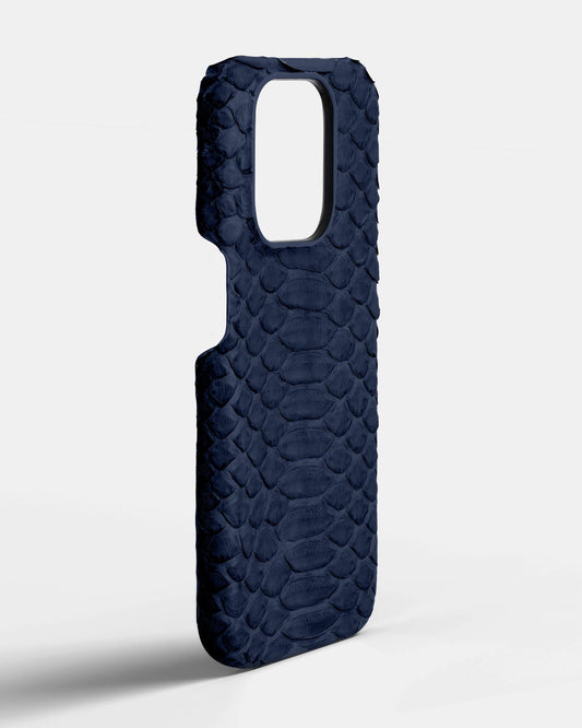 Leather case made of dark blue python for iPhone 13 Pro Max