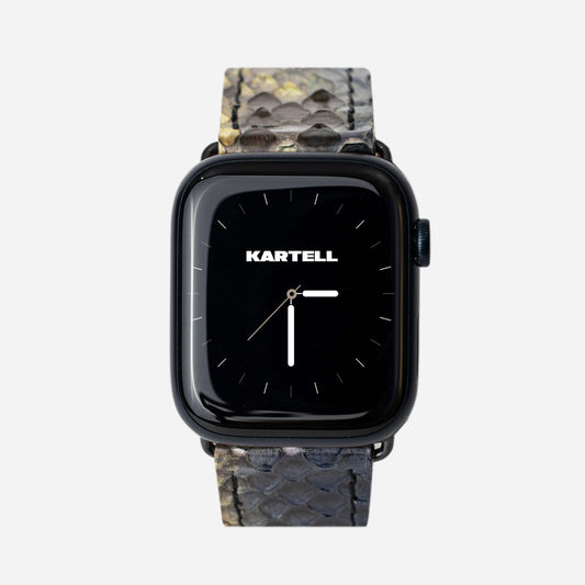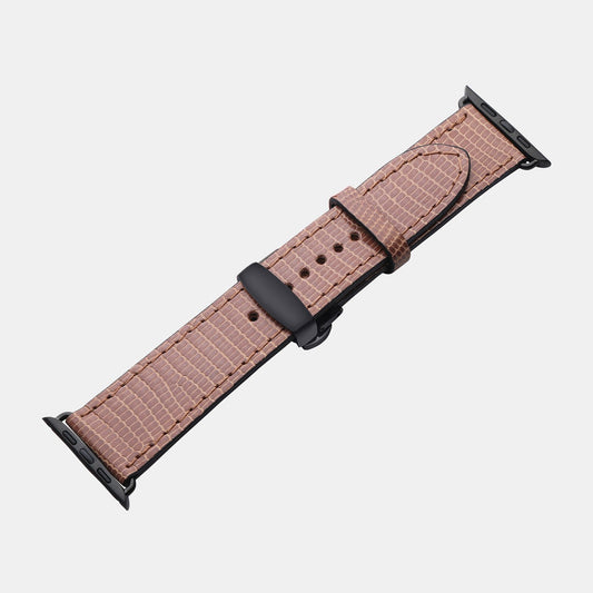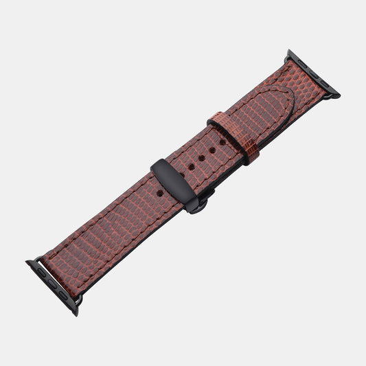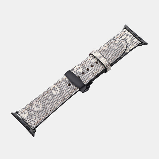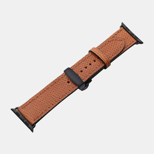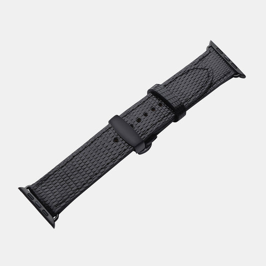 Apple Watch strap made of calfskin, embossed to resemble crocodile in black color
