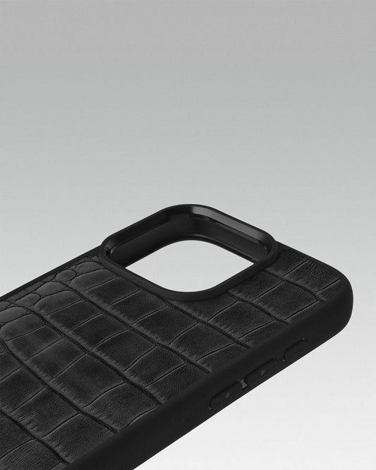 Gray Crocodile Embossed Calfskin Case for iPhone 16