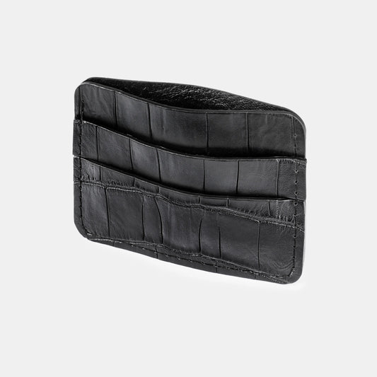 Cardholder made of calfskin, embossed to look like crocodile in black color