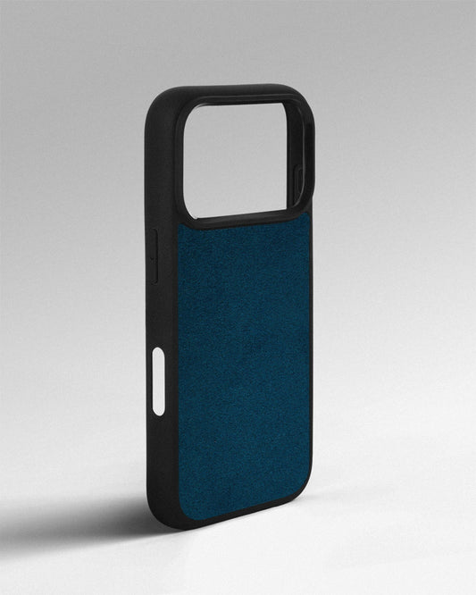 Case with blue alcantara insert for iPhone 16