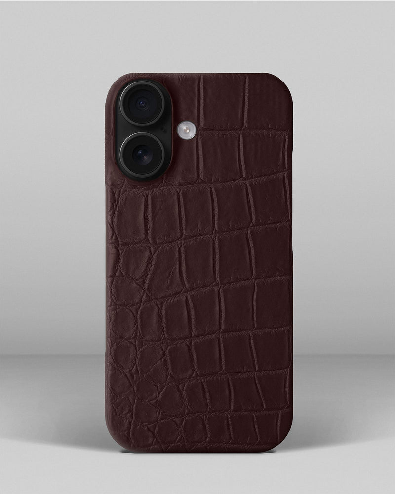 Темно-коричневий чохол обтягнутий шкірою крокодила для iPhone 14