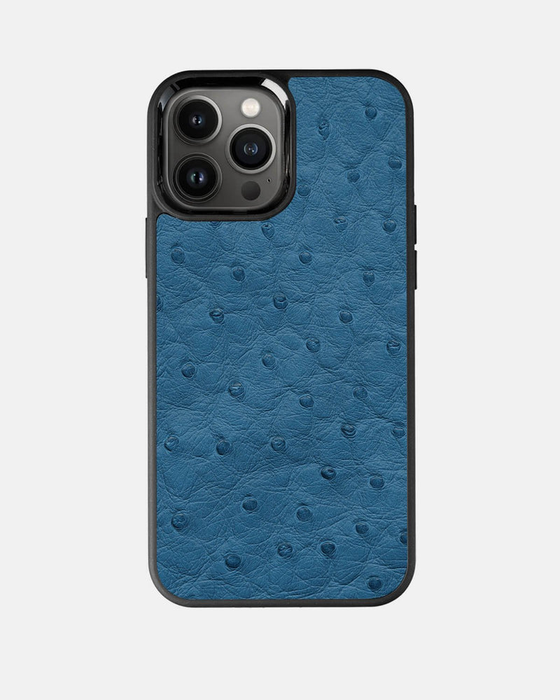Чохол із блакитної шкіри страуса з фолікулами для iPhone 13 Pro Max