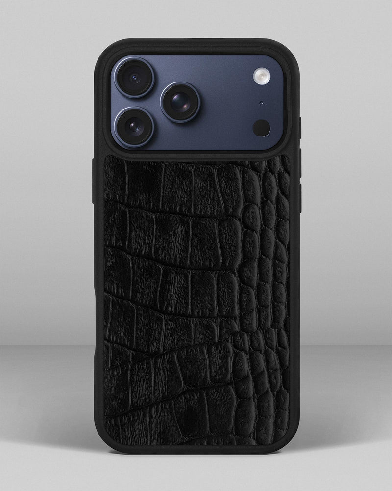 Black crocodile embossed calfskin case for iPhone 17 Pro Max