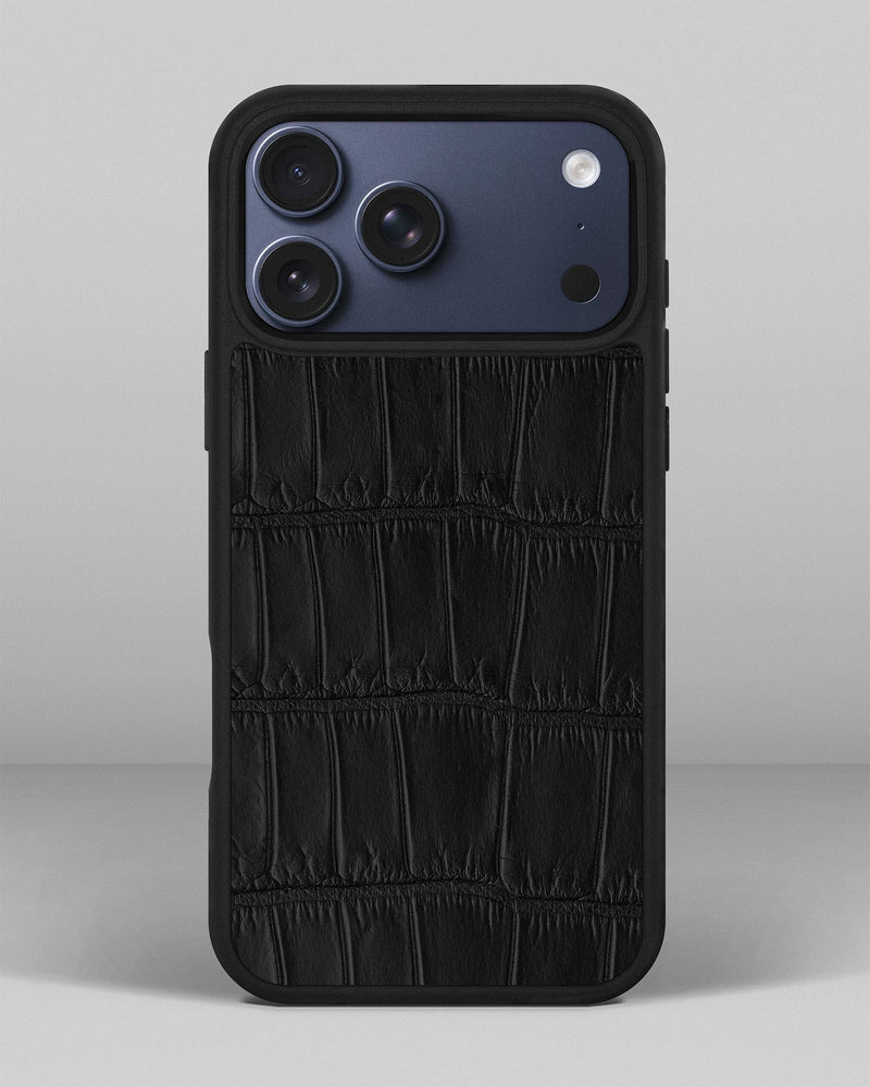 Black crocodile leather case for iPhone 17 Pro Max