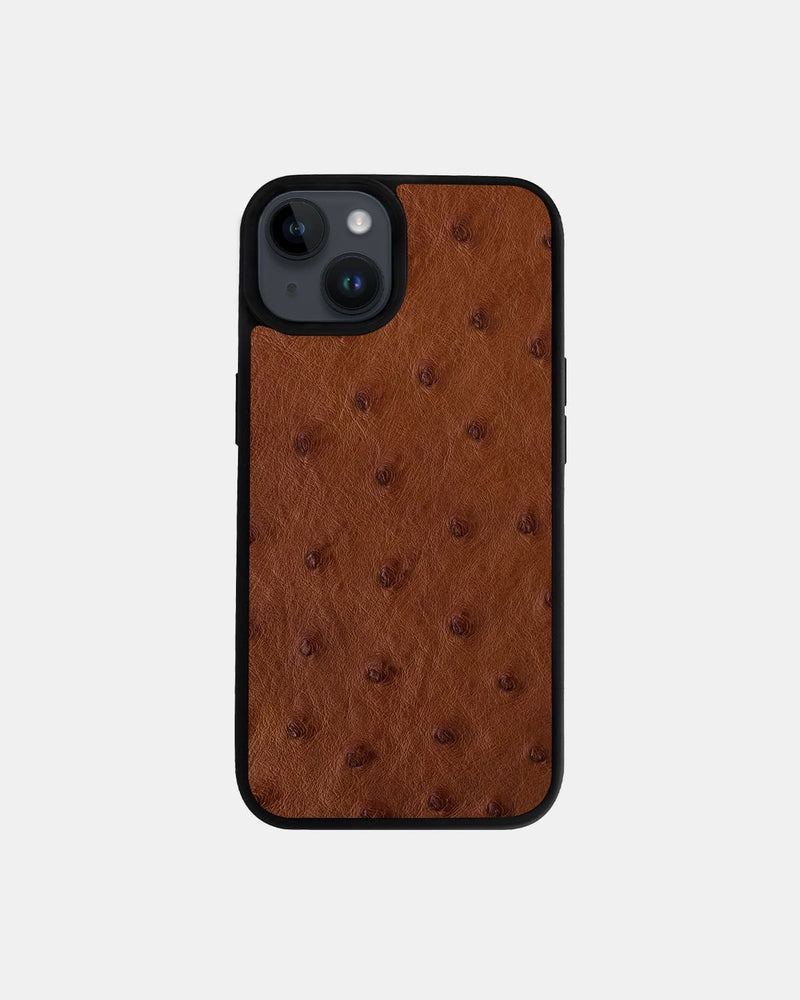 Чохол із коричневої шкіри страуса з фолікулами для iPhone 14