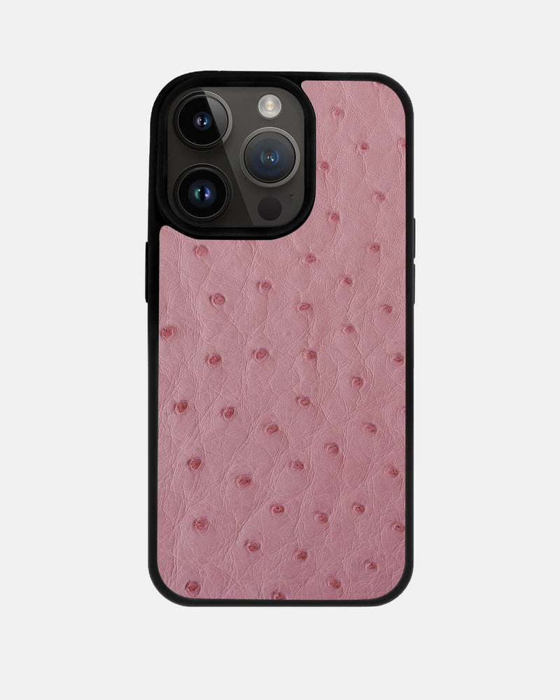 Чохол із рожевої шкіри страуса з фолікулами для iPhone 14 Pro Max