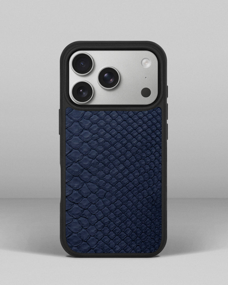 Чохол із темно-синьої шкіри пітона з дрібними лусочками для iPhone 17 Pro