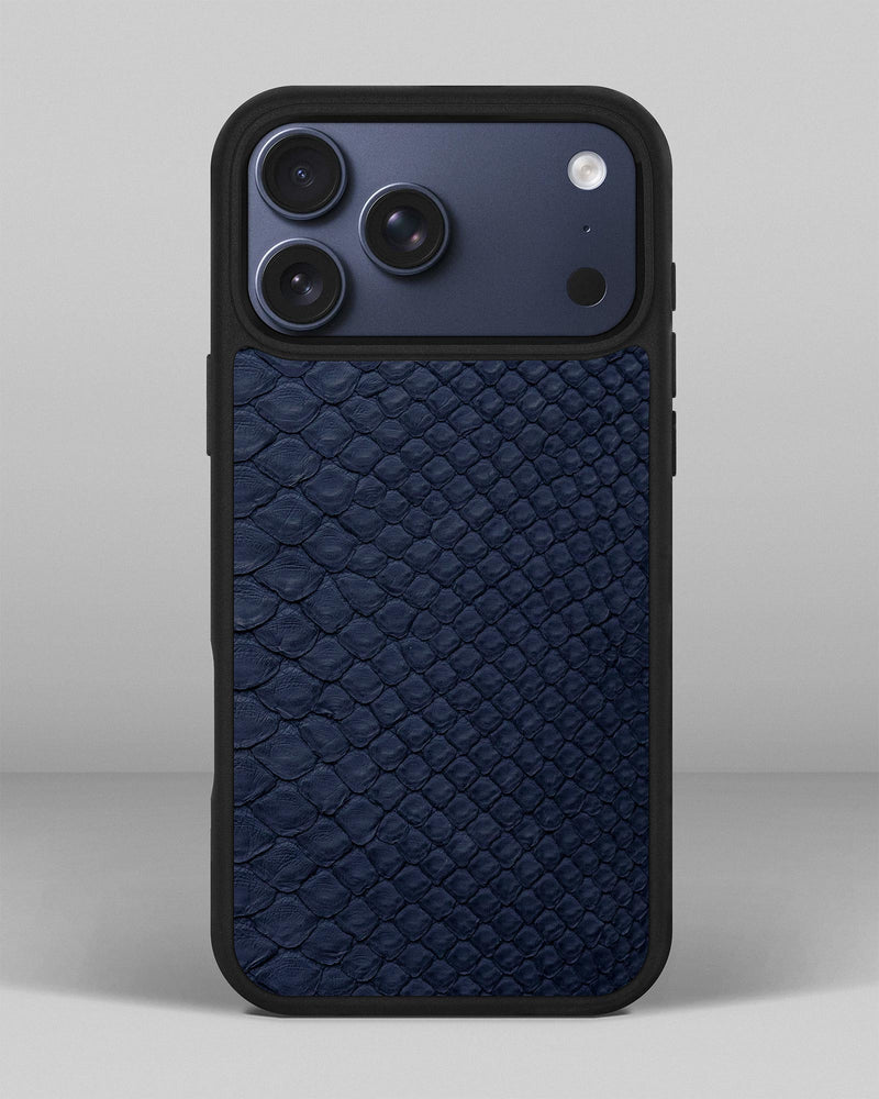 Dark blue python skin case with small scales for iPhone 17 Pro Max