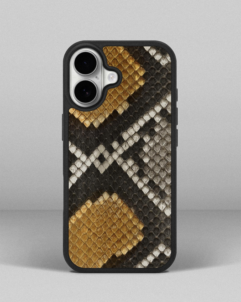 Чохол із сіро-жовтої шкіри пітона з дрібними лусочками для iPhone 17