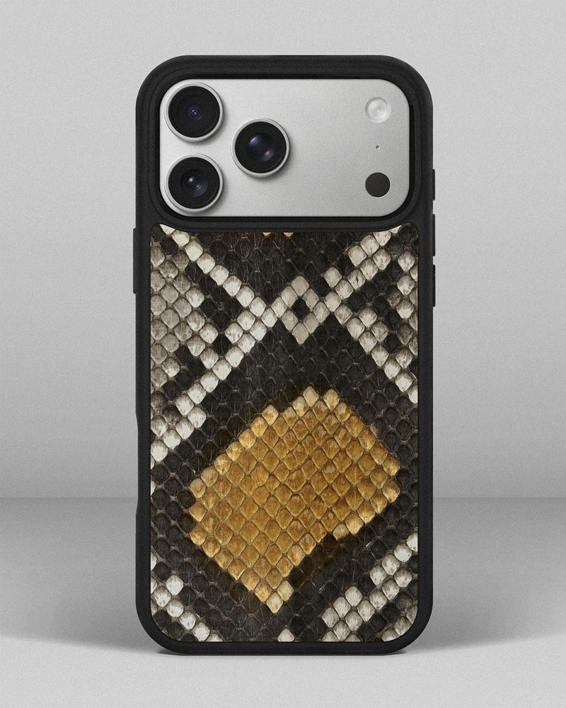Сіро-жовта шкіра пітона відзначається своєю унікальною кольоровою гаммою і малюнком. Кожна лусочка має свої характеристики і додає чохлу вишуканості і стилю. Ви будете мати неповторний аксесуар, оскільки кожен чохол виготовляється з урахуванням природних варіацій шкіри пітона.