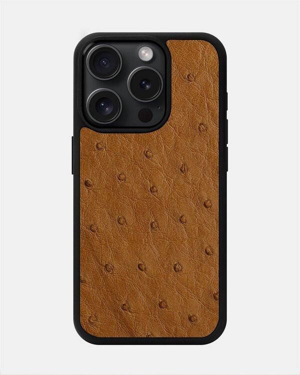 Чохол із світло-коричневої шкіри страуса з фолікулами для iPhone 15 Pro Max