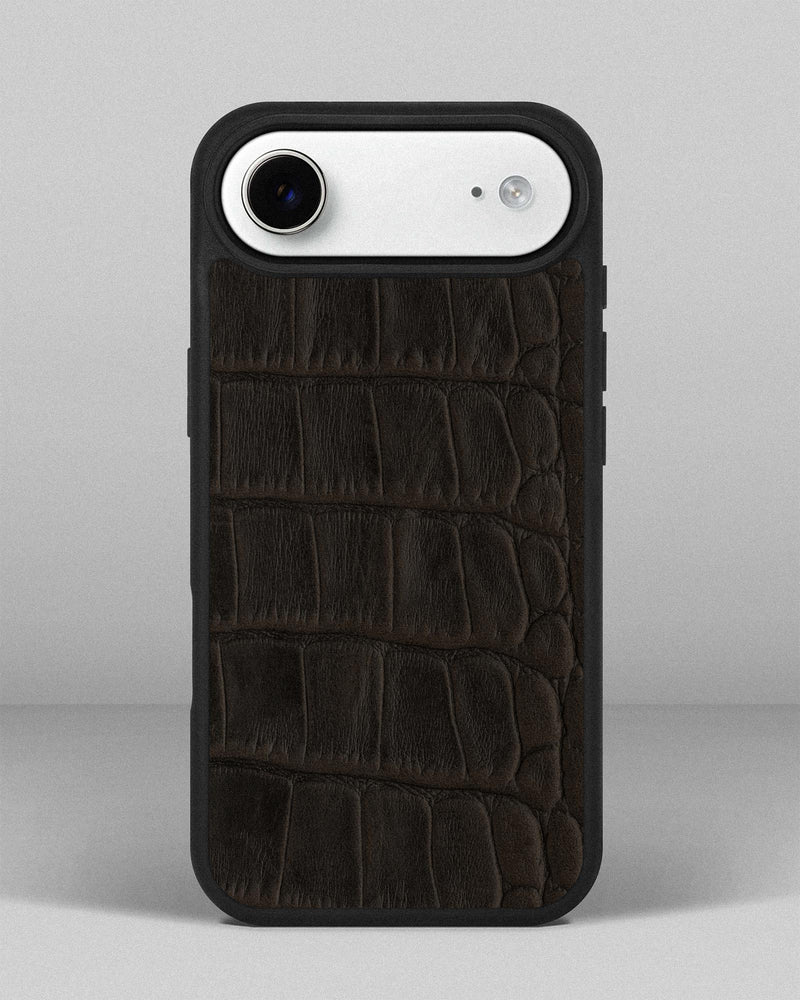Чохол із темно-коричневого тиснення під крокодила на телячій шкірі для iPhone 17 Air