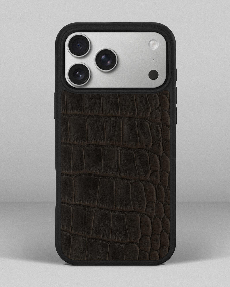 Чохол із темно-коричневого тиснення під крокодила на телячій шкірі для iPhone 17 Pro Max