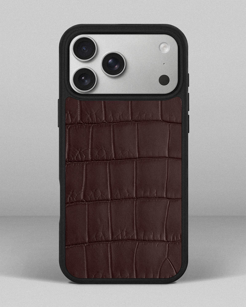 Чохол із темно-коричневої шкіри крокодила для iPhone 17 Pro Max