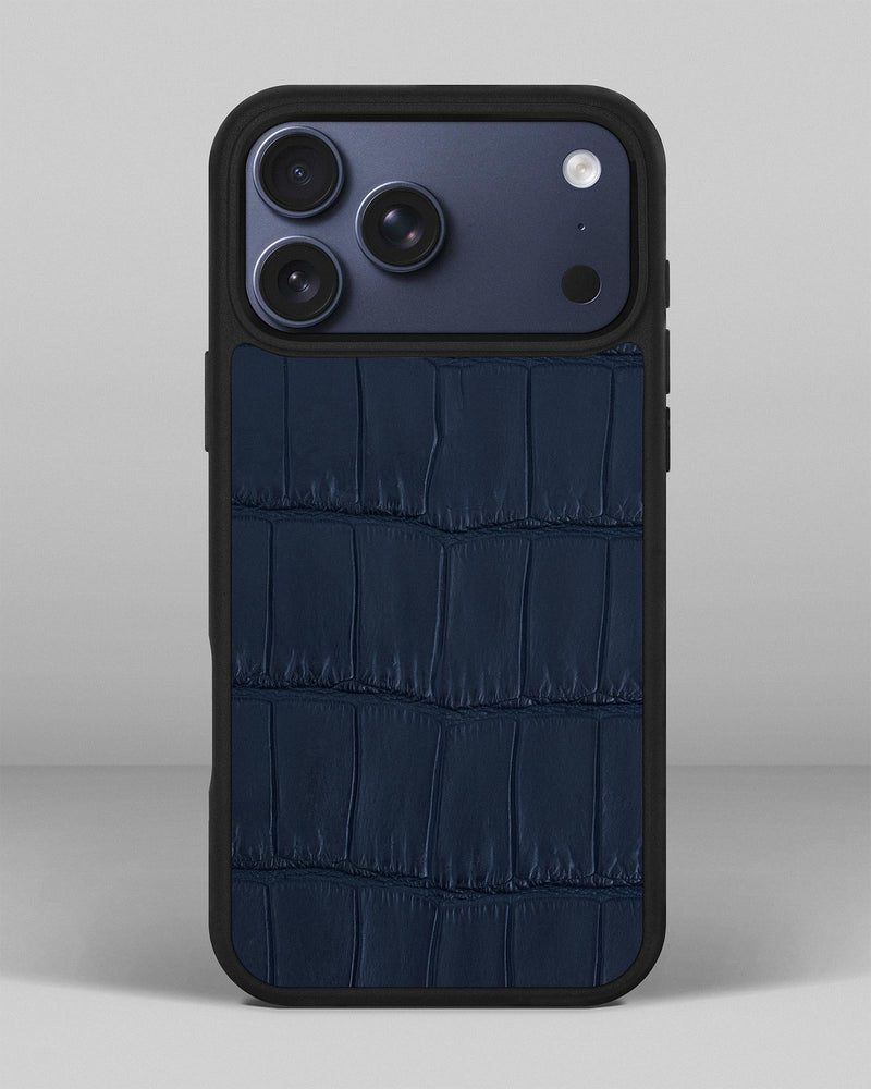 Dark Blue Crocodile Leather Case for iPhone 17 Pro Max