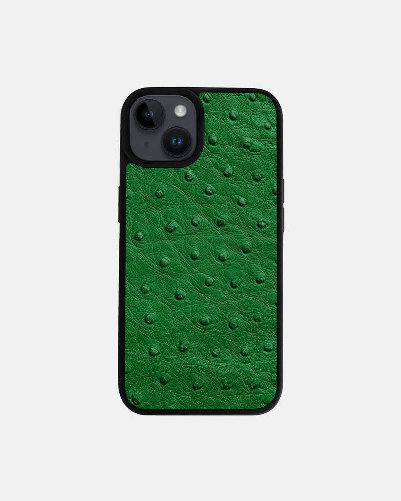 Чохол із зеленої шкіри страуса з фолікулами для iPhone 14