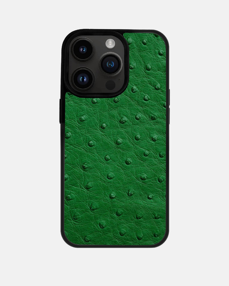 Чохол із зеленої шкіри страуса з фолікулами для iPhone 14 Pro Max - це вишуканий аксесуар, який додасть вашому смартфону неперевершений стиль і надійний захист.