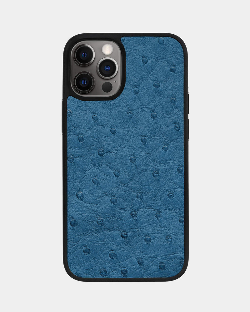 Чохол із блакитної шкіри страуса з фолікулами для iPhone 12 Pro Max