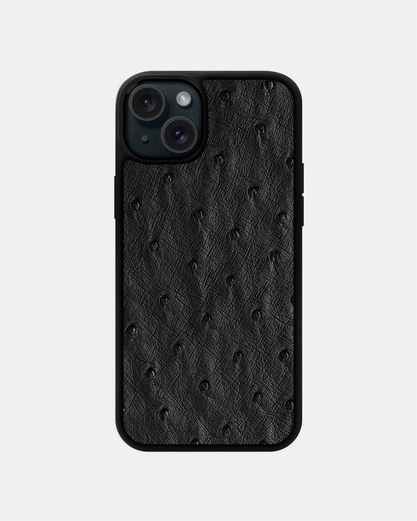 Чохол із чорної шкіри страуса з фолікулами для iPhone 15