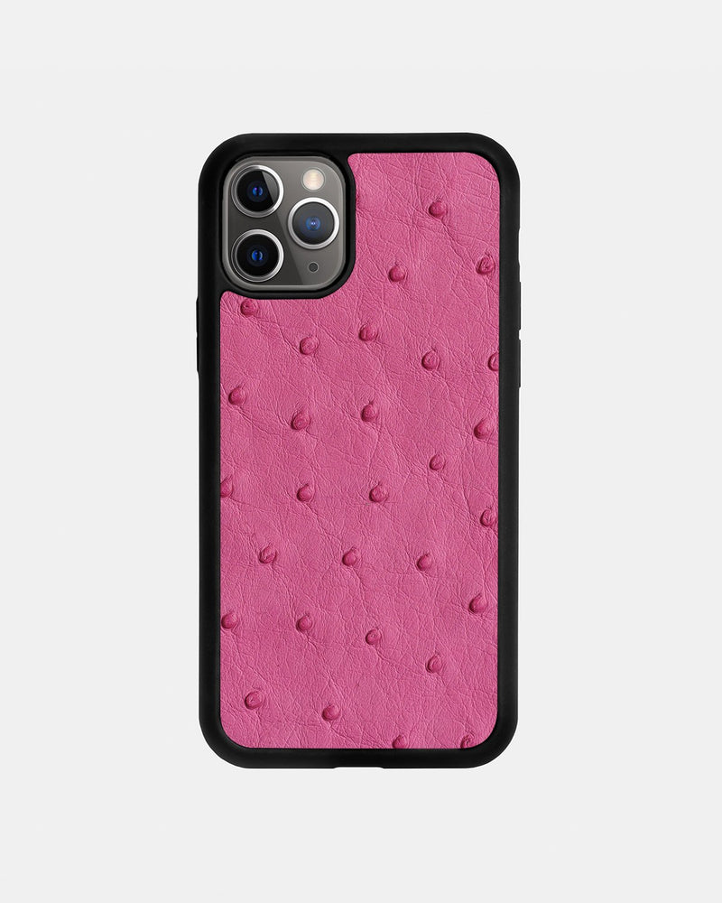Чохол із яскраво-рожевої шкіри страуса з фолікулами для iPhone 11 Pro
