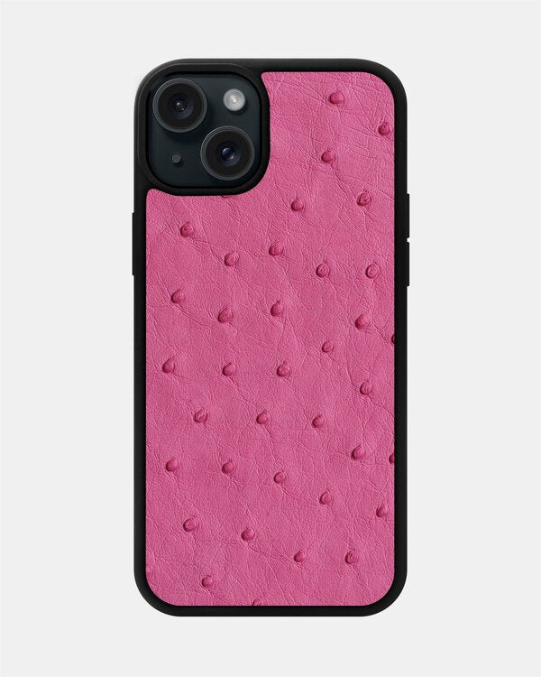 Чохол із яскраво-рожевої шкіри страуса з фолікулами для iPhone 15 Plus