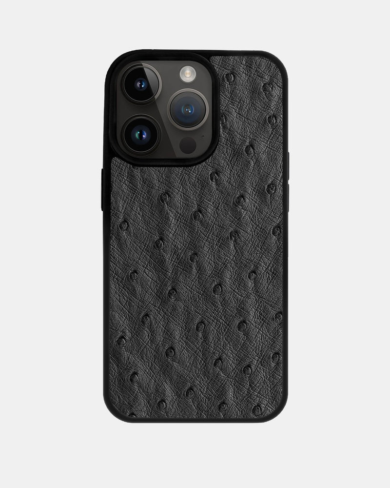 Чохол із темно-сірої шкіри страуса з фолікулами для iPhone 14 Pro Max