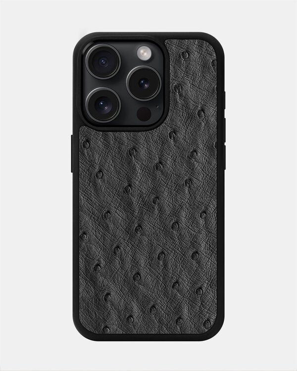 Чохол із темно-сірої шкіри страуса з фолікулами для iPhone 15 Pro Max