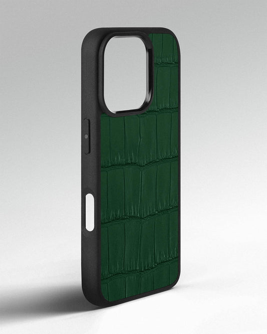 Чохол для iPhone 16 Pro Max із шкіри купон в зеленому кольорі з тисненням хреста