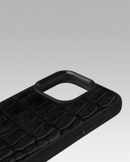 Чохол для iPhone 16 Pro Max із шкіри купон в чорному кольорі з тисненням православного хреста