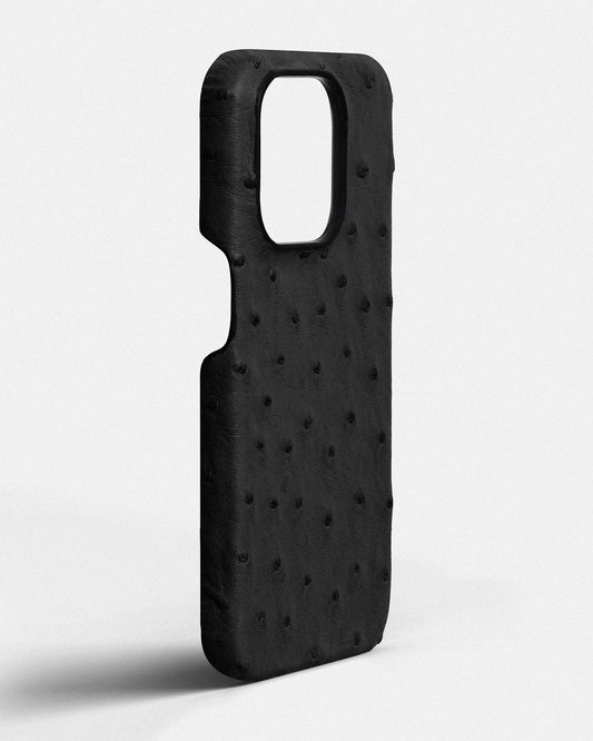 Шкіряний чохол з чорного страуса для iPhone 15 Pro Max