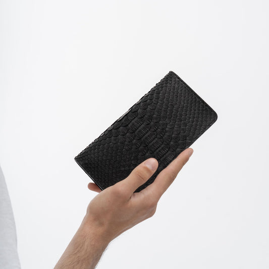 Гаманець з чорної шкіри пітона з широкими лусочками