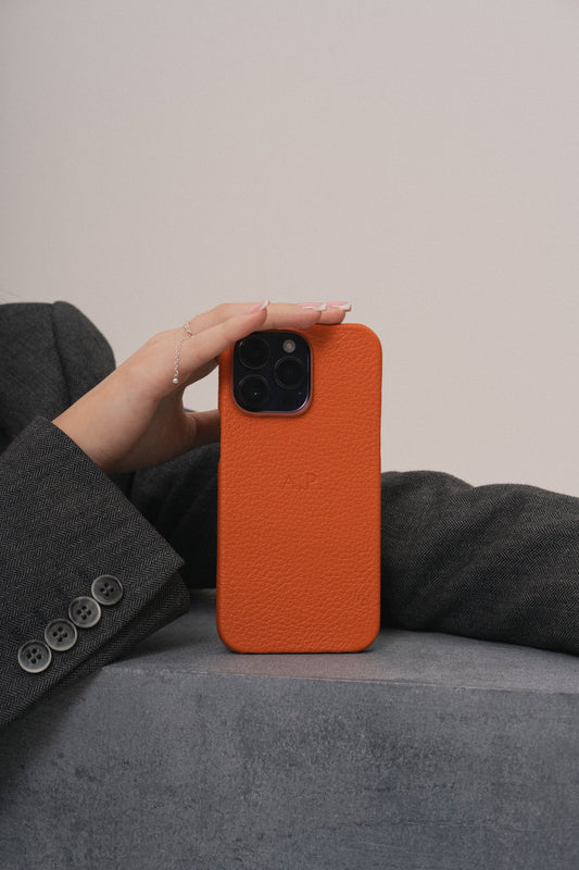 Помаранчевий шкіряний чохол для iPhone 15 Pro