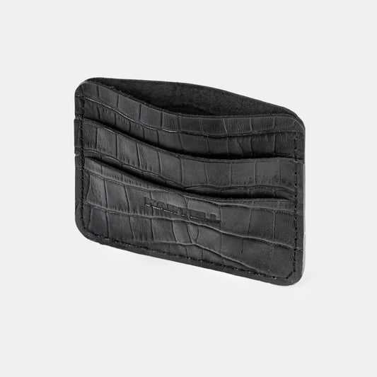 Кардхолдер з чорного тиснення під крокодила на телячій шкірі
