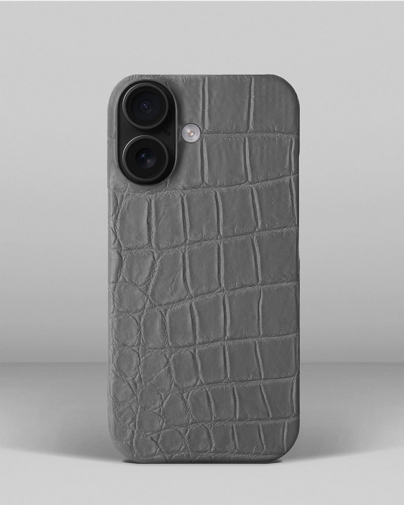 Сірий чохол обтягнутий шкірою крокодила для iPhone 16