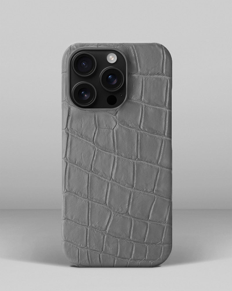 Сірий чохол обтягнутий шкірою крокодила для iPhone 16 Pro