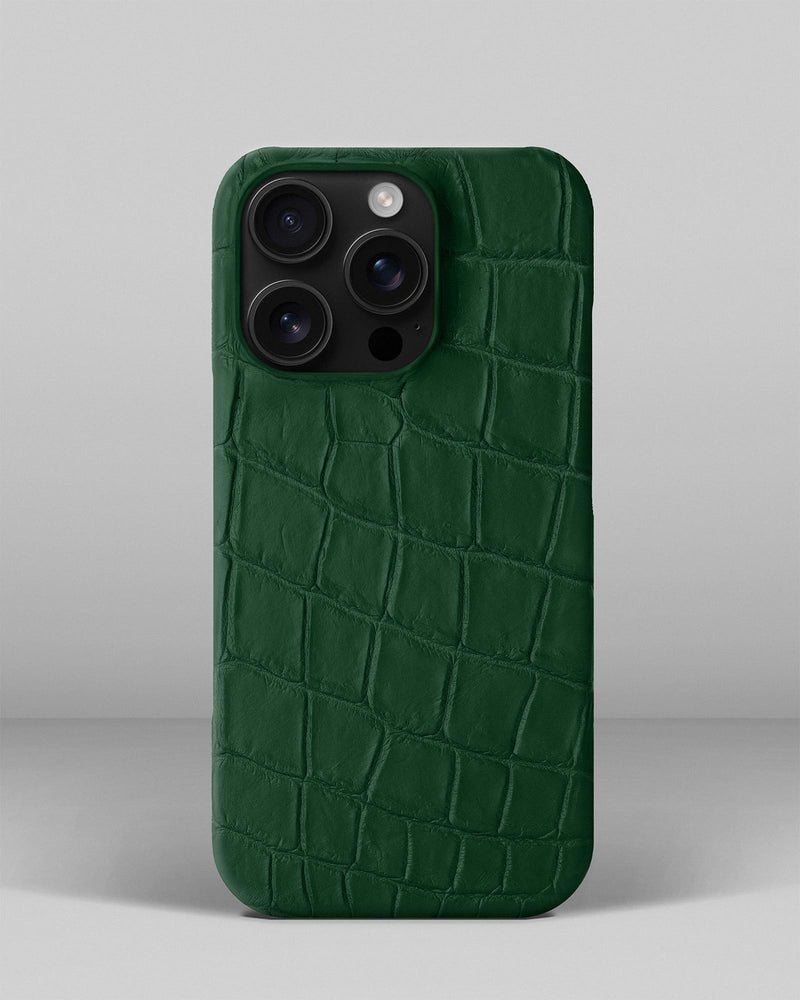 Темно-зелений чохол обтягнутий шкірою крокодила для iPhone 14 Pro