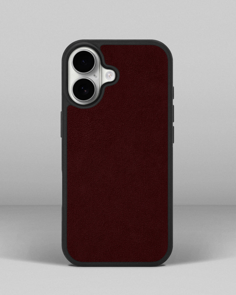 Чохол із бордовою вставкою з алькантари для iPhone 17