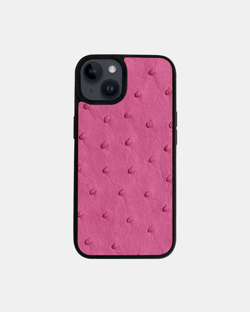 Чохол із яскраво-рожевої шкіри страуса з фолікулами для iPhone 14