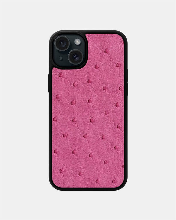 Чохол із яскраво-рожевої шкіри страуса з фолікулами для iPhone 15